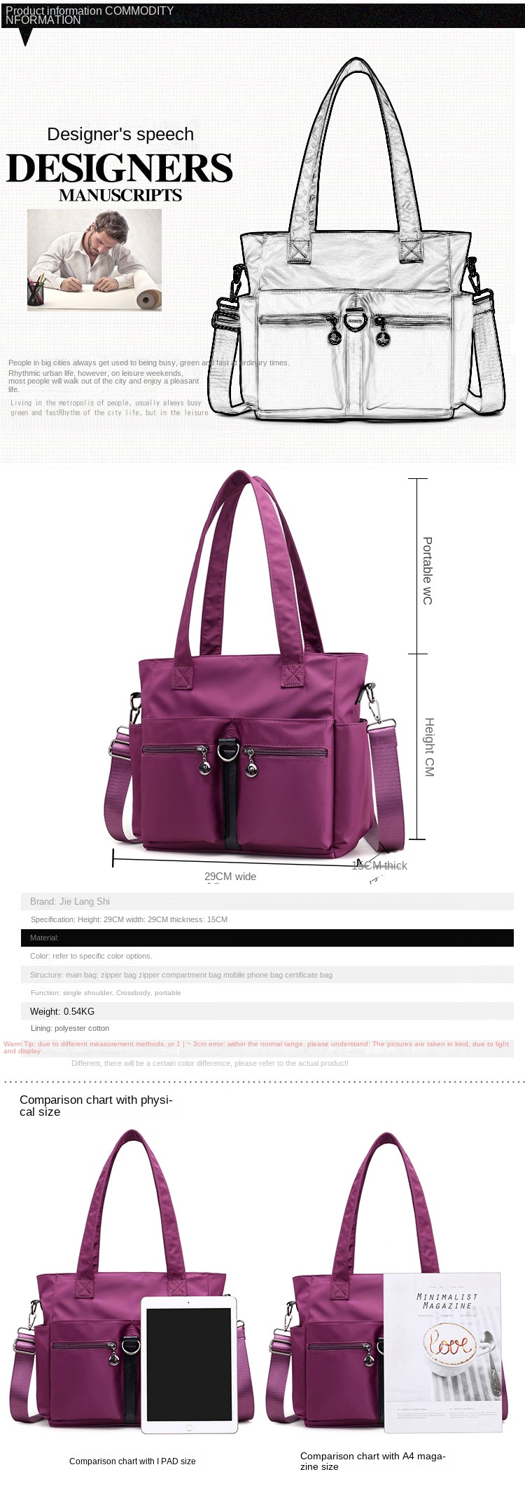 Be the first to review “Jielangshi New Fashion Women’s Bag Pure Color Fabric Single Shoulder Handheld Crossbody Bag with Multiple Pockets Lightweight Large Capacity Women’s Bag” Cancel reply