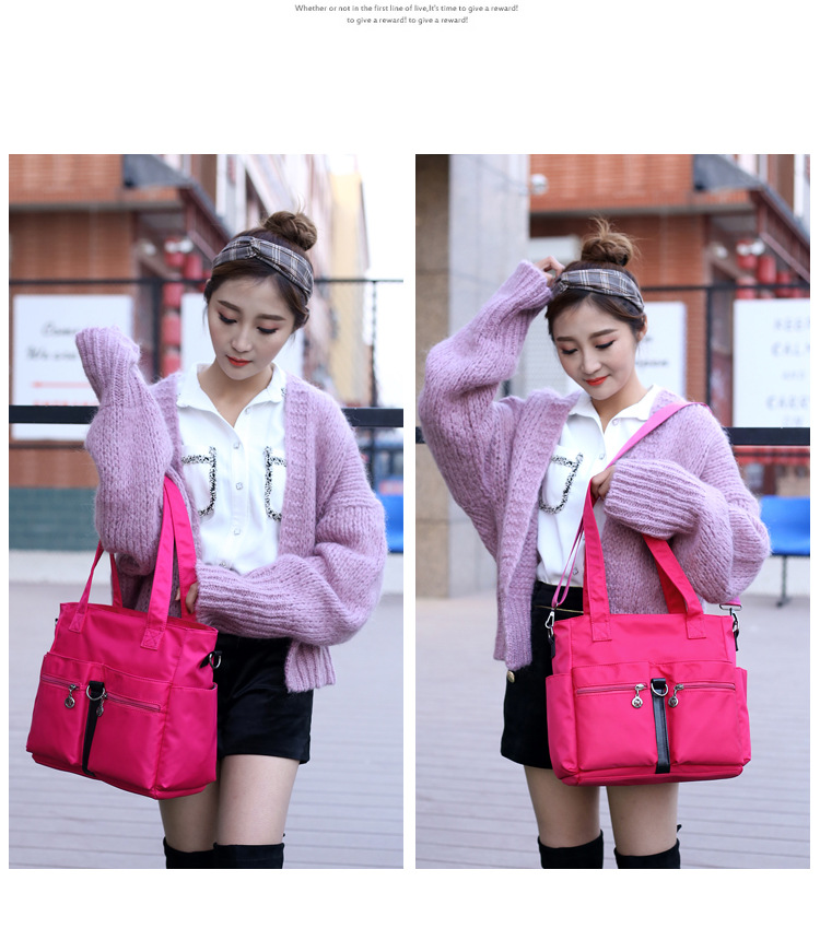 Jielangshi New Fashion Women’s Bag Pure Color Fabric Single Shoulder Handheld Crossbody Bag with Multiple Pockets Lightweight Large Capacity Women’s Bag